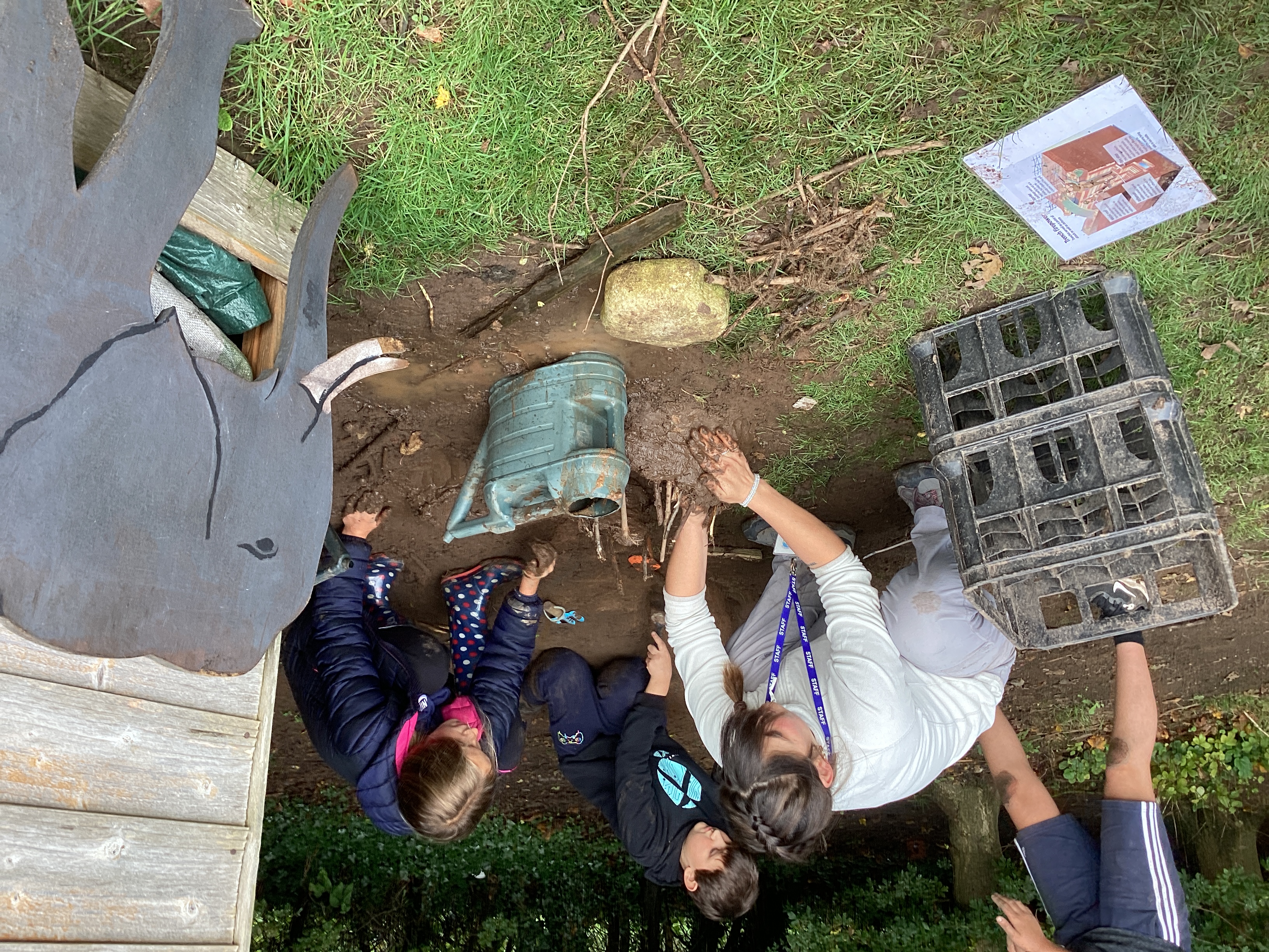 Using plans of trenches from the Western Front to construct our own model trenches. Learning about WW2 on the Home Front, including the land army. Getting very muddy!