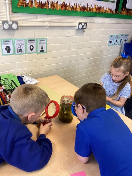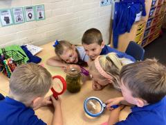 We were lucky enough to have some tadpoles in our class today, so the children were very excited to have a closer look at them through magnifying glasses.